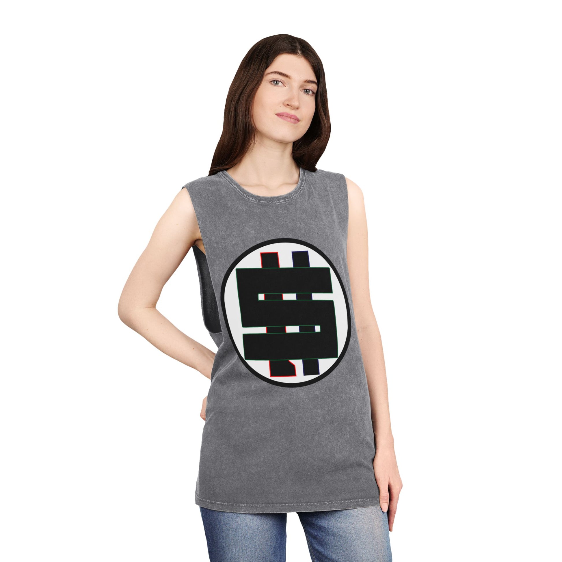 Unisex Stonewash Tank Top with Graphic Logo, Casual Summer Wear, Beach Day Essential, Gift for Him or Her, Versatile Activewear, [...]